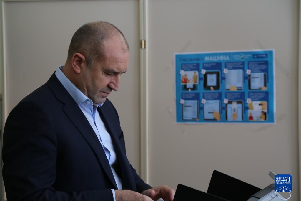4月2日,保加利亞總統(tǒng)拉德夫在索非亞一處投票站投票。