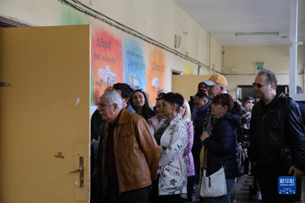 4月2日,保加利亞民眾在索非亞一處投票站等待投票。