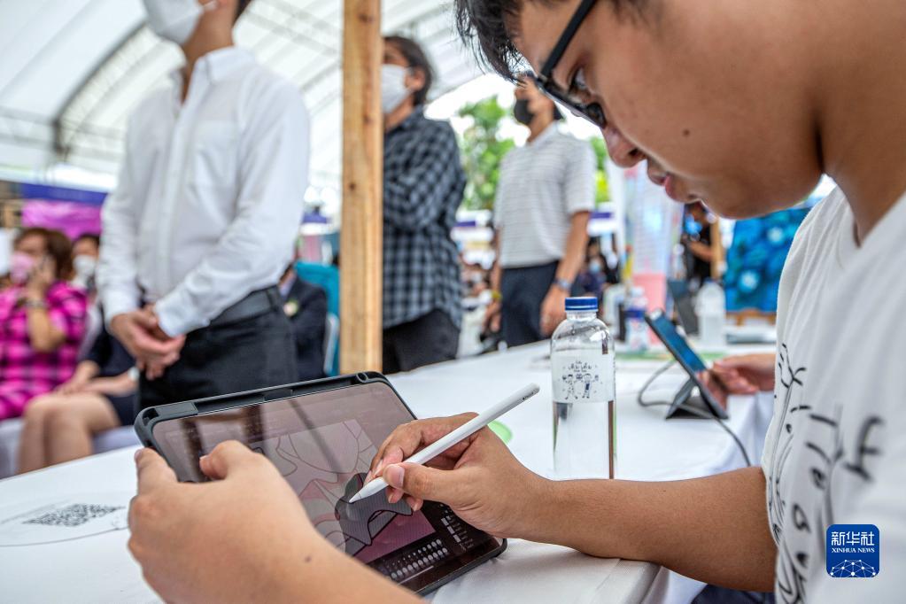 4月2日,在位于曼谷的泰國孤獨癥職業中心,一名孤獨癥患者在平板上繪畫。