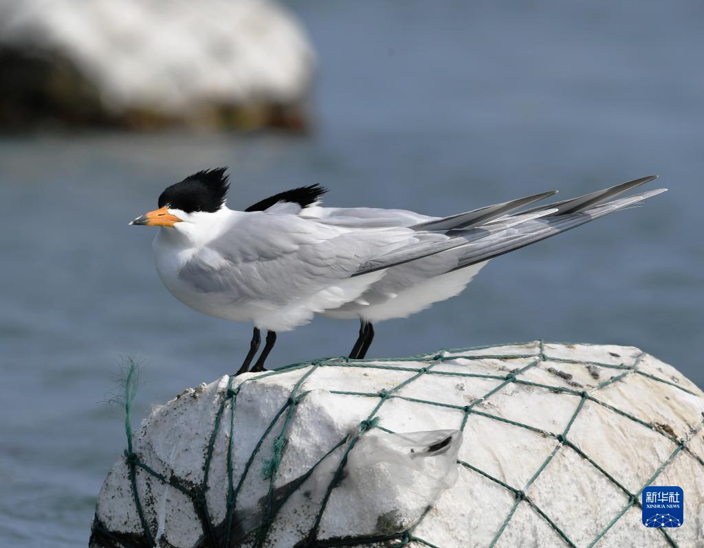 4月2日,兩只黑嘴端鳳頭燕鷗在圍頭村周邊海域停留歇息。