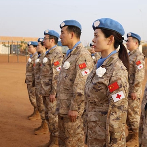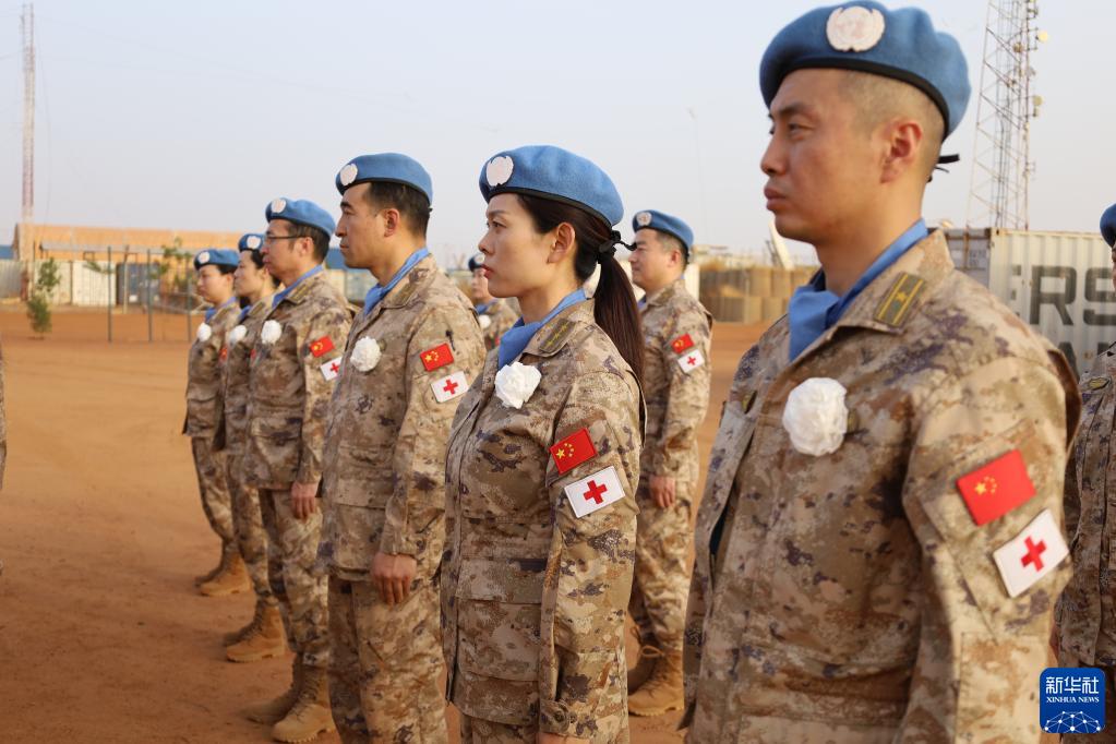 中國第十批赴馬里維和醫療分隊當日在聯合國駐馬里多層面綜合穩定特派團(馬里穩定團)東戰區加奧超營的維和烈士廣場開展清明祭掃活動,悼念藍盔忠魂。