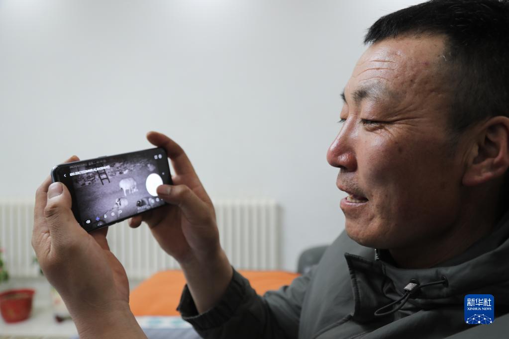 3月28日,朝克德力根展示手機(jī)上的羊圈監(jiān)控影像。