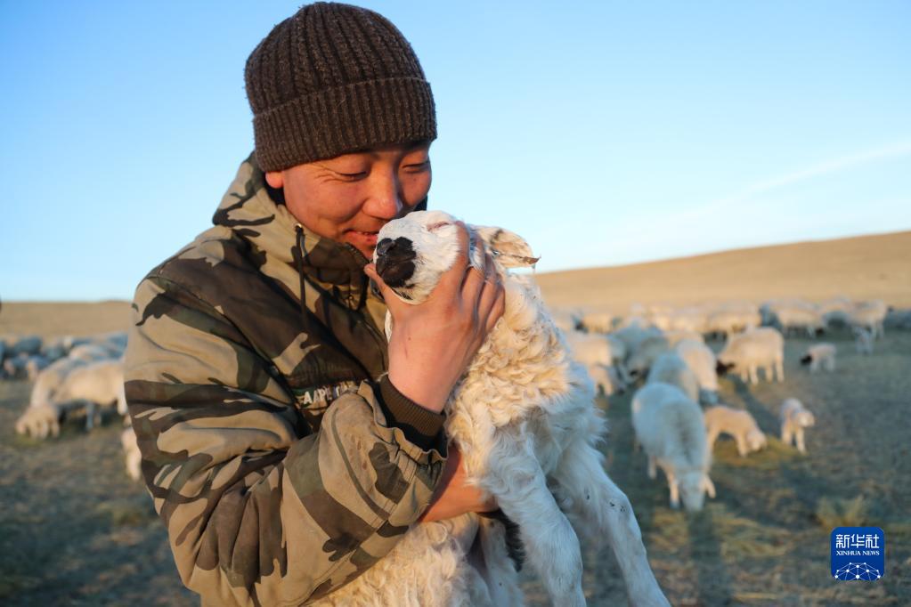 春日暖陽(yáng)下,朝克漫步在羊群中,看到新生的羊羔便彎腰查看。這里是錫林郭勒,這里是春天的草原,人與自然和諧共生的“春日牧歌”在此奏響。