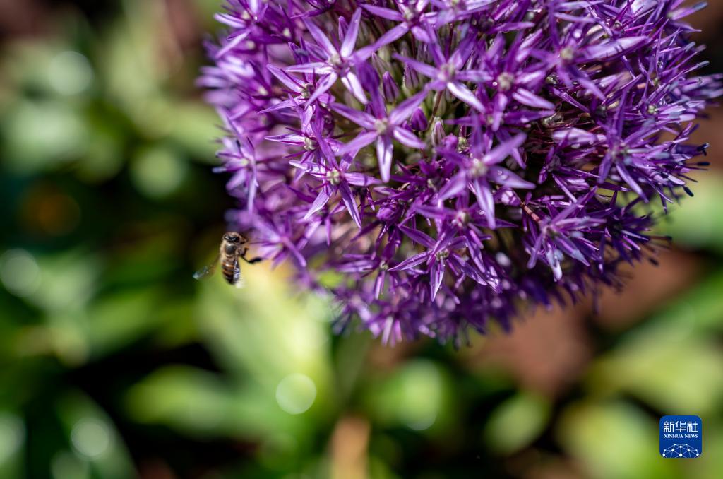 這是4月3日在昆明植物園中烏全球蔥園(昆明中心)拍攝的蔥花。