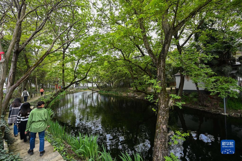 4月3日,游客在嘉興市秀洲區王店鎮鎮中村游覽鄉村美景。