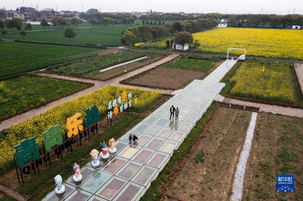 空中俯瞰嘉興市秀洲區王店鎮鎮中村的“青青樂地”農耕文化園(4月3日攝,無人機照片)。