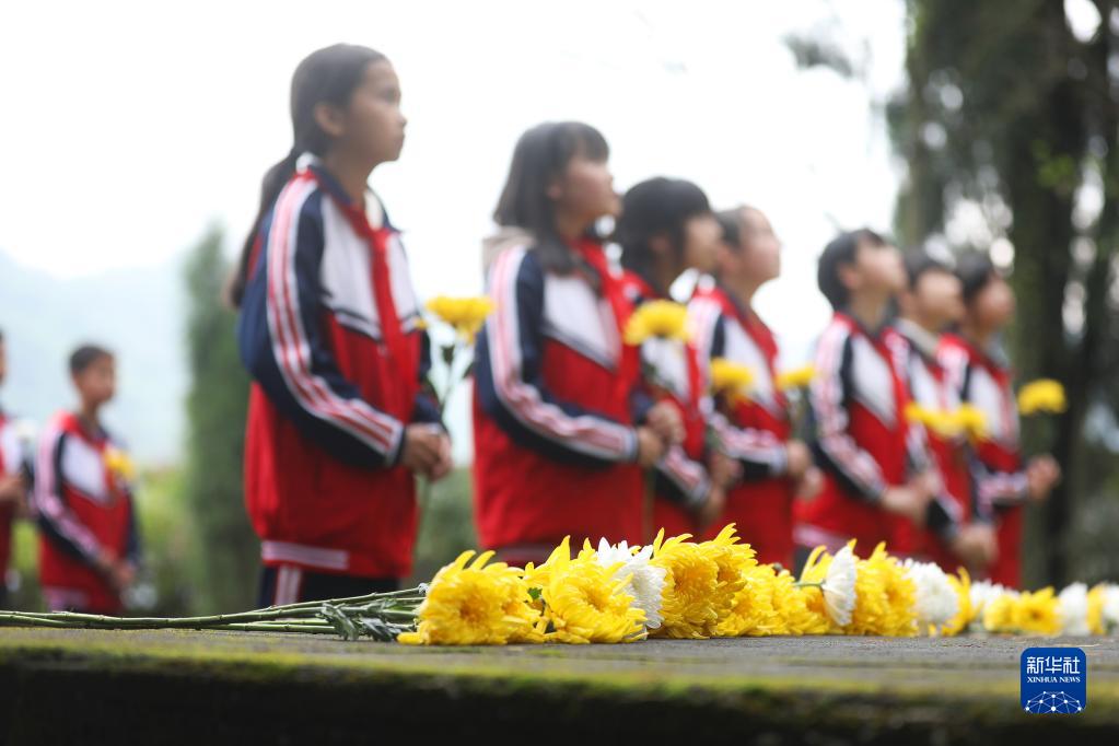 4月3日,江西省宜春市上高縣田心中心小學的孩子們來到當地馬鞍山革命烈士陵園開展清明祭掃活動。