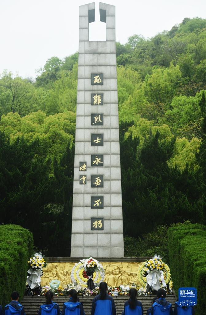 4月3日,杭州英才高中的學(xué)生在杭州革命烈士陵園緬懷先烈。