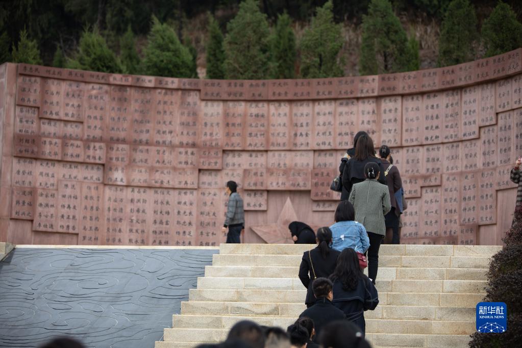 4月3日,在重慶市秀山土家族苗族自治縣烈士陵園,人們在英名墻前獻花瞻仰。