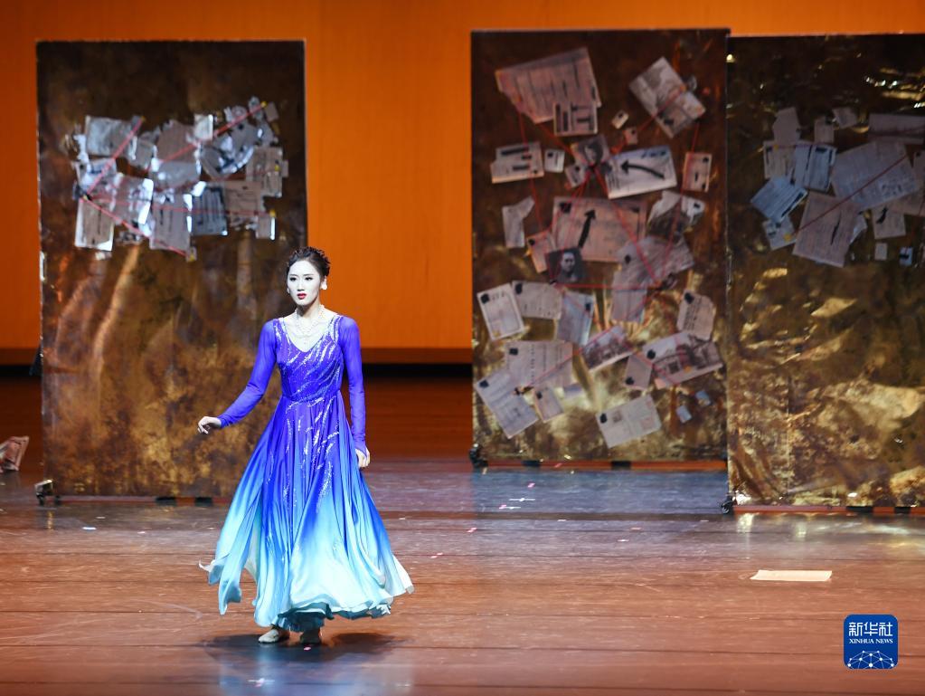 4月3日,演員在舞劇《藍色裙擺》中表演。
