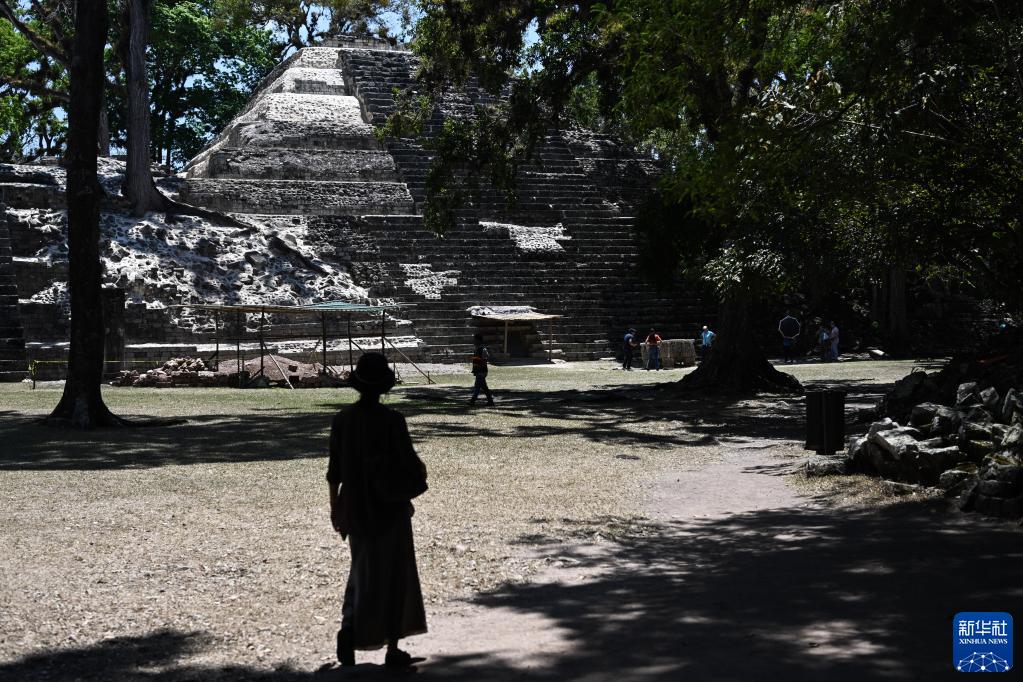 4月1日,游客在洪都拉斯科潘瑪雅古城遺址內參觀。