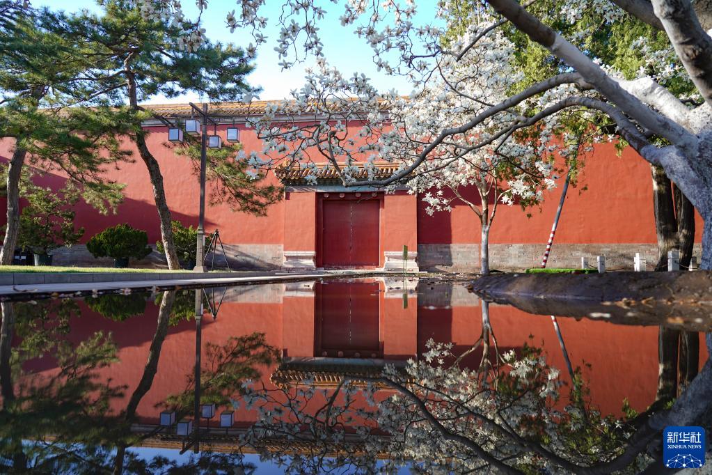 這是玉蘭花映襯下的太廟一角(3月27日攝)。太廟始建于明永樂十八年(1420年),占地19.7萬平方米,是明清兩代皇帝祭祀祖先的場所,是我國現存最完整、規模最宏大的皇家祭祖建筑群。新華社記者 陳鐘昊 攝