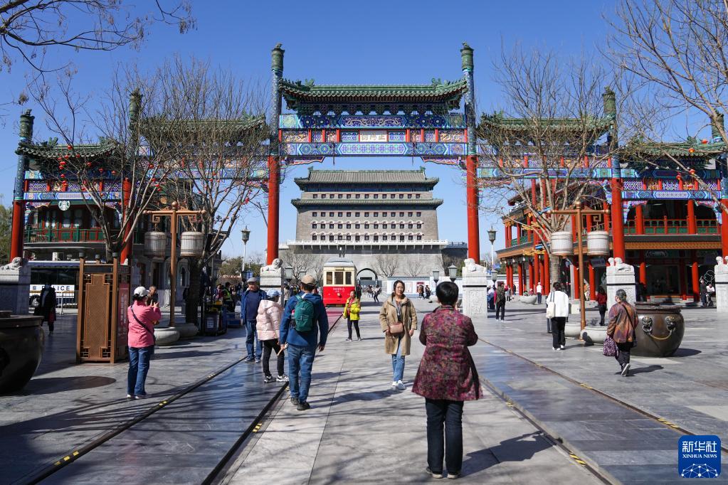 游客在正陽門南的前門大街參觀游覽(3月27日攝)。新華社記者 鞠煥宗 攝