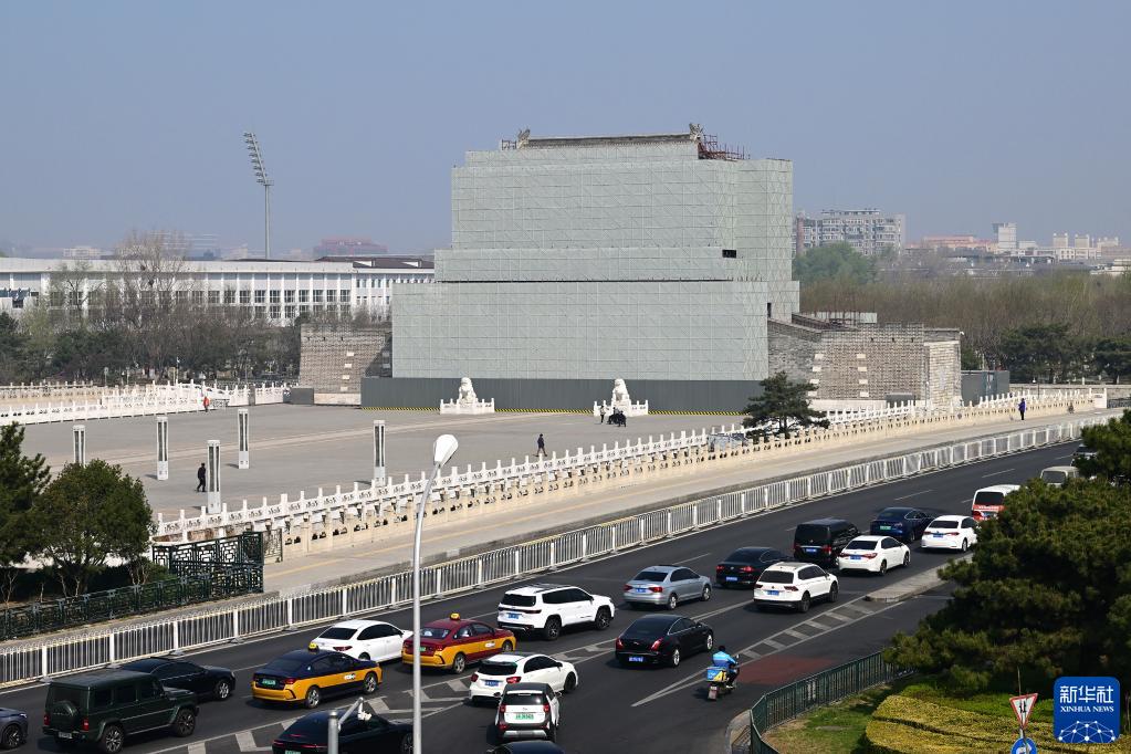 修繕維護中的永定門(3月29日攝)。新華社記者 李賀 攝