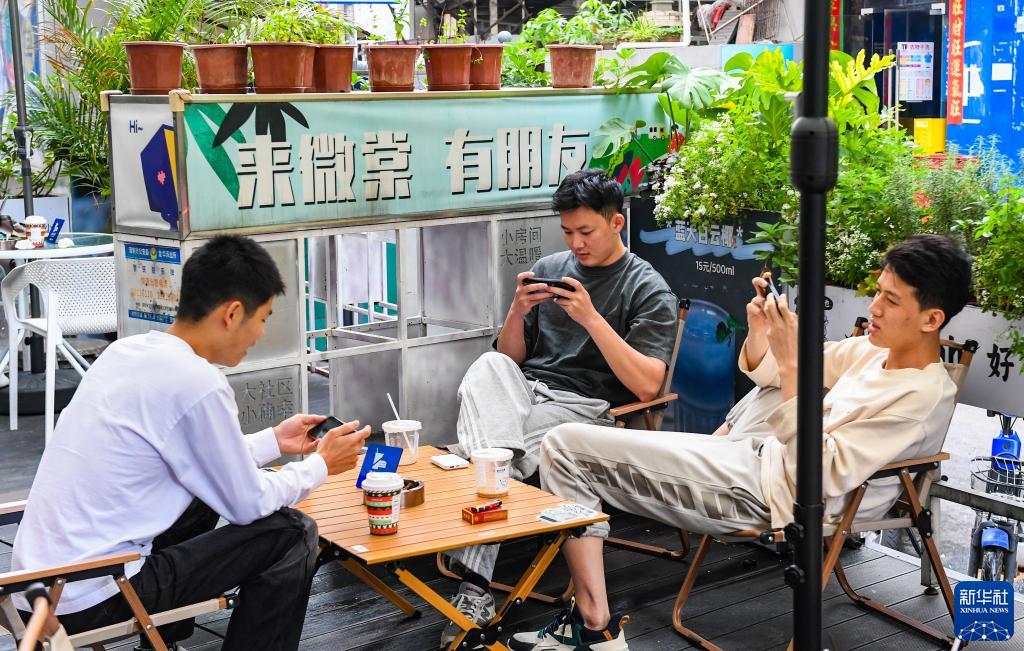 4月2日,在深圳市龍華區(qū)元芬村,居民在社區(qū)飲品店休閑。