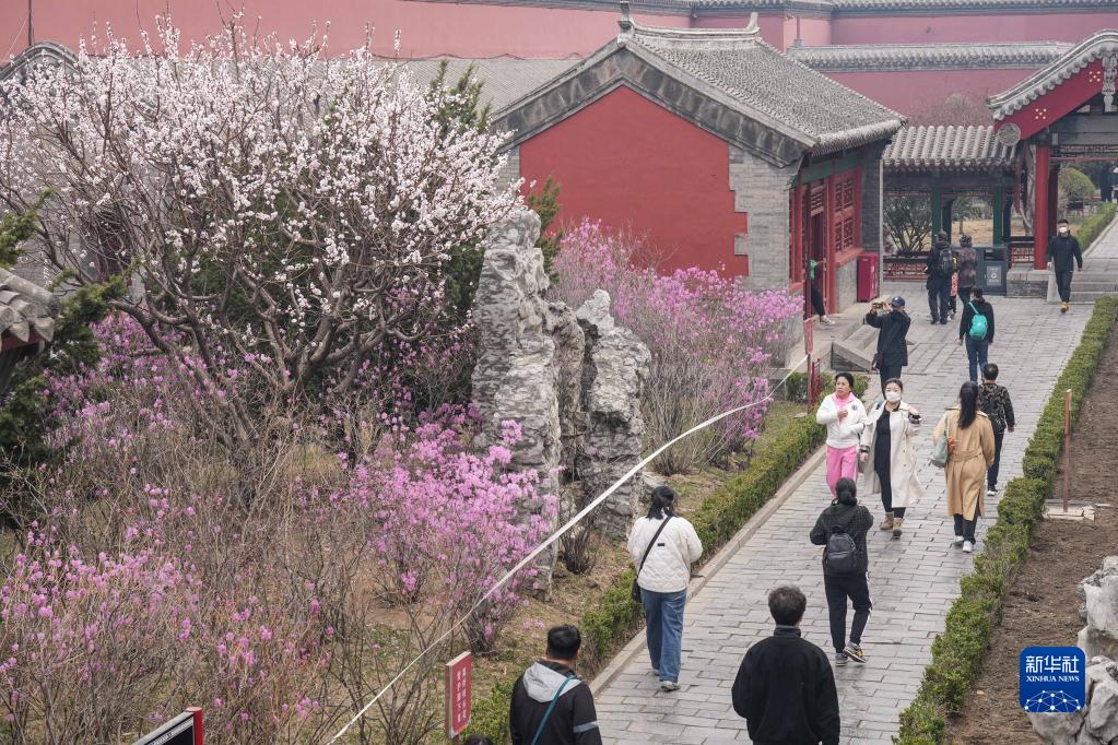 近日,隨著氣溫的變化,沈陽故宮內的花卉逐漸開放,紅墻花影吸引游客前來參觀、拍照。