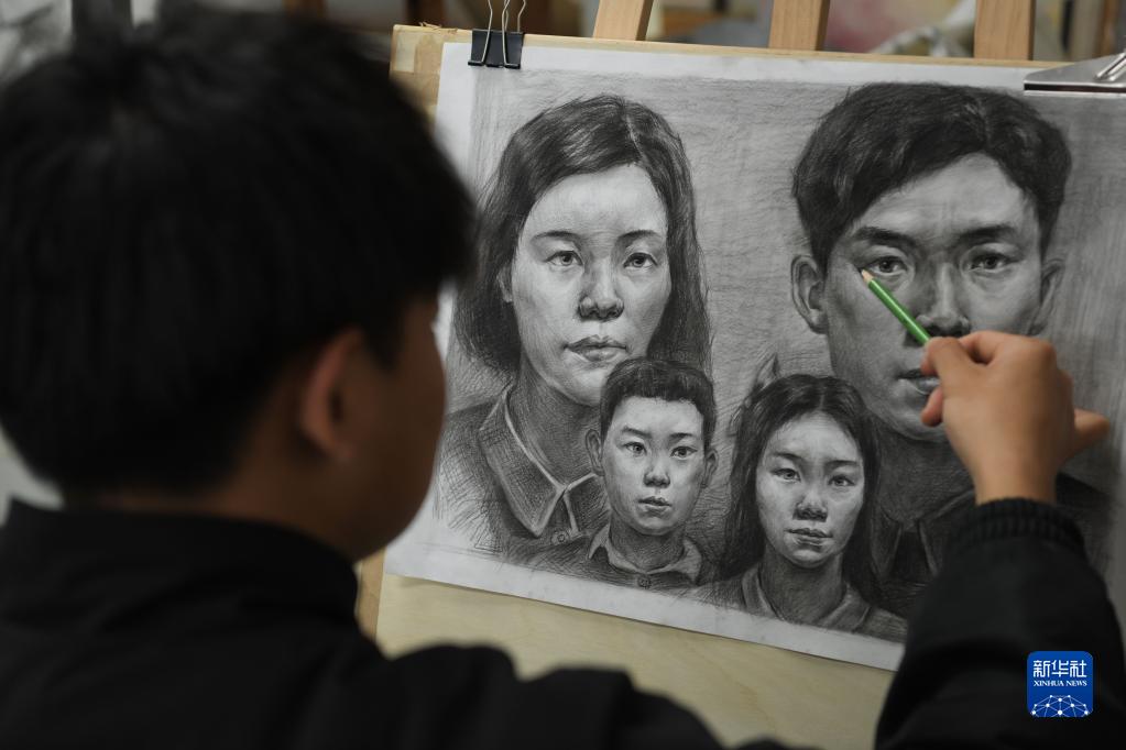 3月31日,安徽師范大學(xué)的大學(xué)生李辰宇在為烈士畫像。