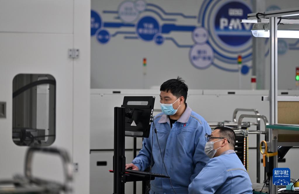 4月3日,員工在天津武清交控技術裝備有限公司的車間內工作。