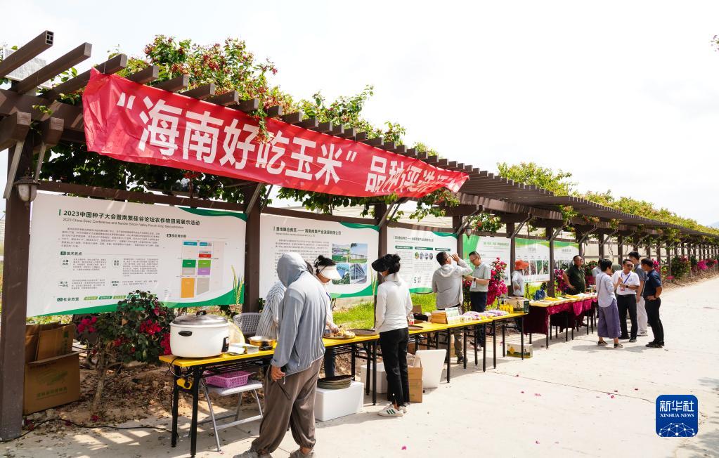 三亞市崖州區國家現代農業產業園作為2023年中國種子大會暨南繁硅谷論壇地展環節的展示基地,共展出200多家單位培育的近30個作物類型1800多個品種,吸引眾多與會者前來參觀。