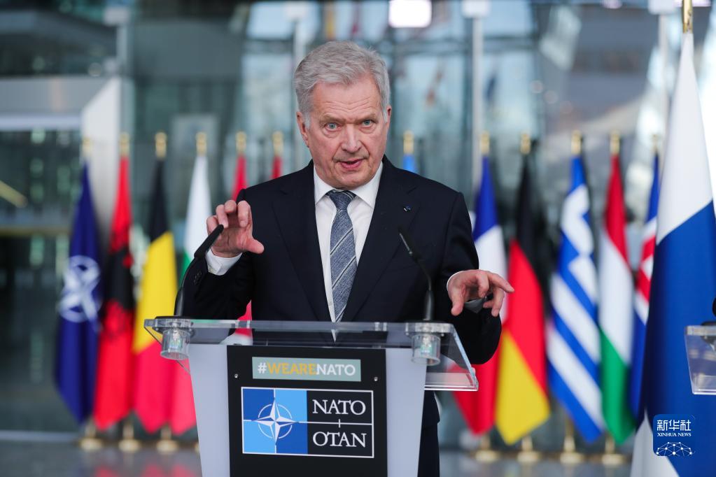 4月4日,在比利時布魯塞爾的北約總部,芬蘭總統尼尼斯托對媒體發言。