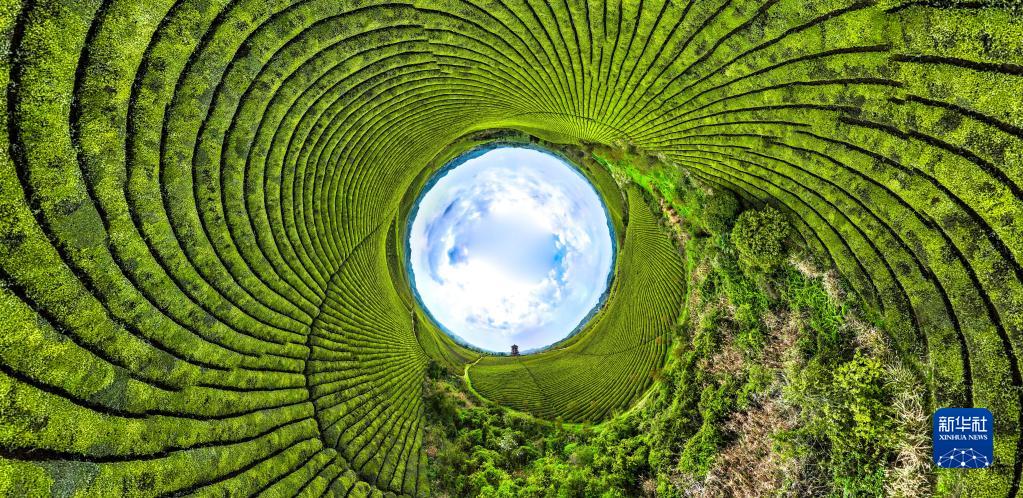 4月4日拍攝的遵義市湄潭縣永興鎮(zhèn)萬畝茶海(無人機全景拼接照片)。