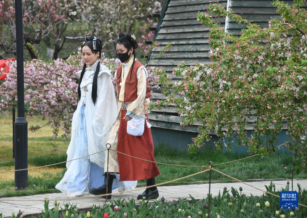 當日是清明節,不少游客來到北京世界花卉大觀園踏青游玩,感受春天的美好。