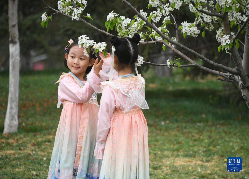 當日是清明節,不少游客來到北京世界花卉大觀園踏青游玩,感受春天的美好。