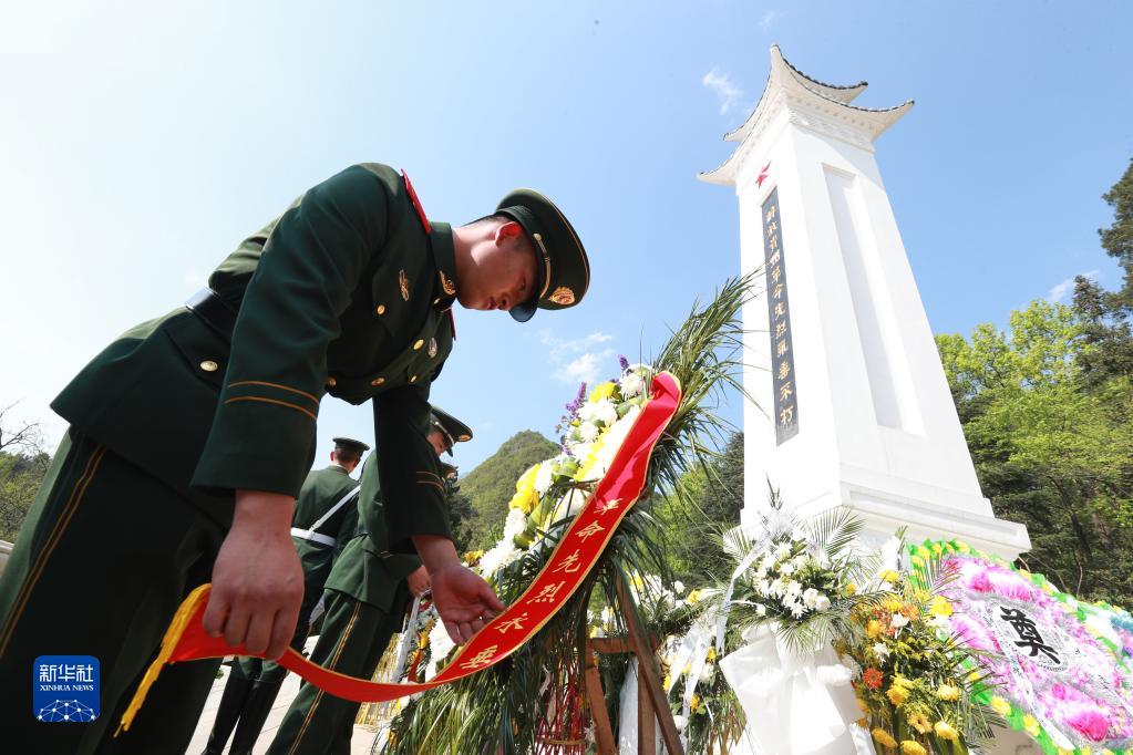 4月4日,武警貴州總隊貴陽支隊組織官兵到黔靈山解放貴州革命烈士紀念碑開展祭掃活動。