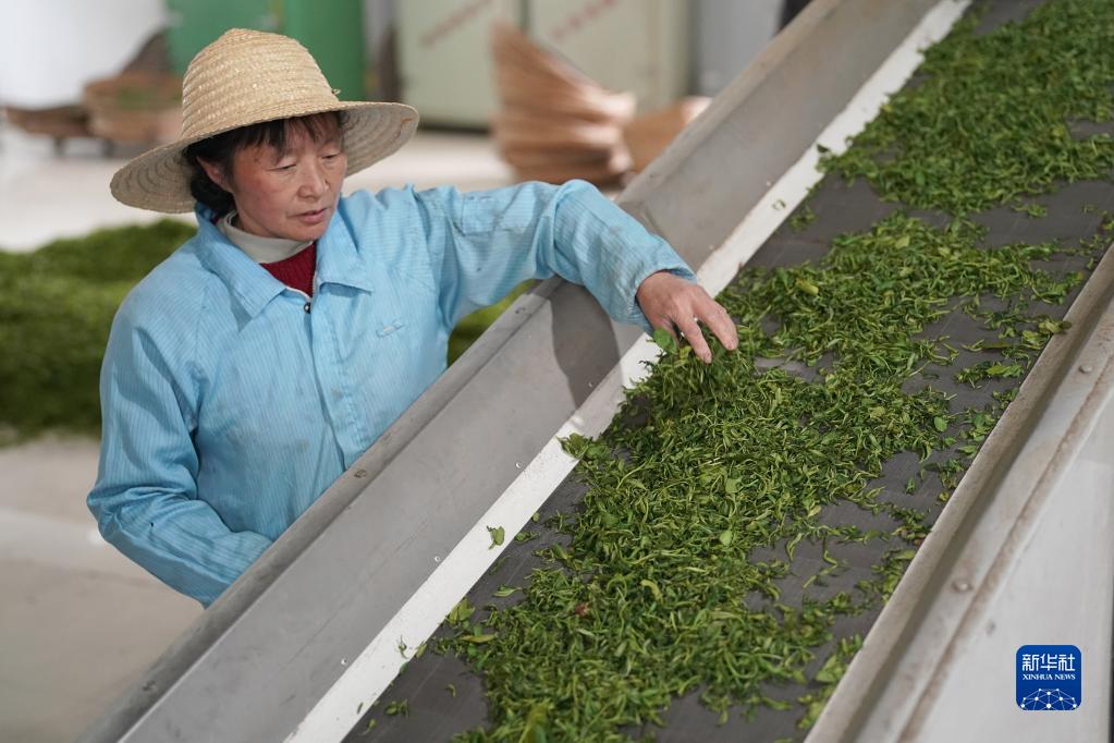 4月5日,陜西省漢中市南鄭區青樹鎮一家茶企的工作人員在生產線上工作。