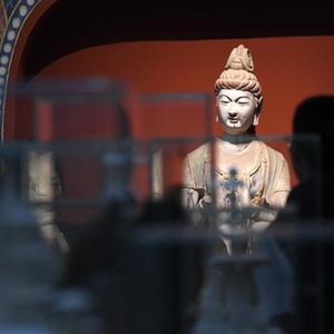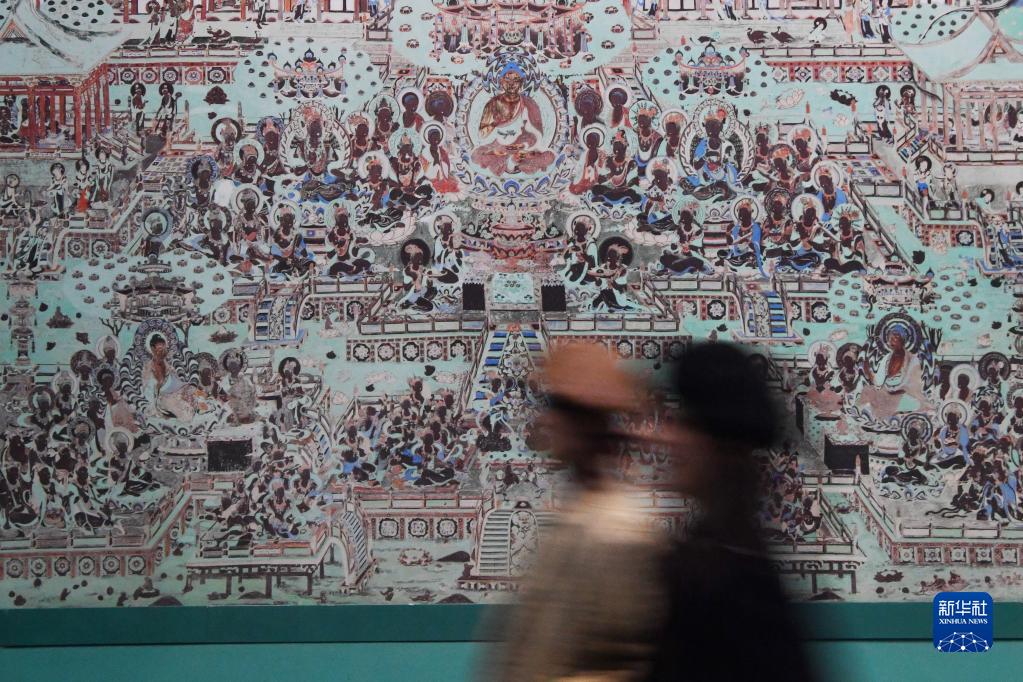4月5日,觀眾在敦煌研究院蘭州分院敦煌藝術館參觀。