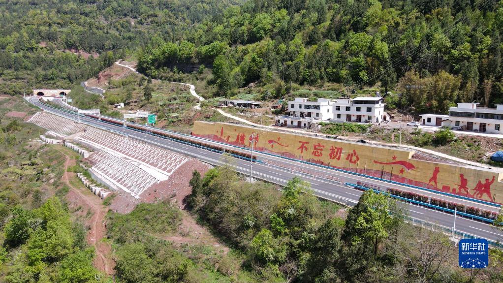 這是4月4日拍攝的鎮廣高速公路王坪至通江段局部(無人機照片)。