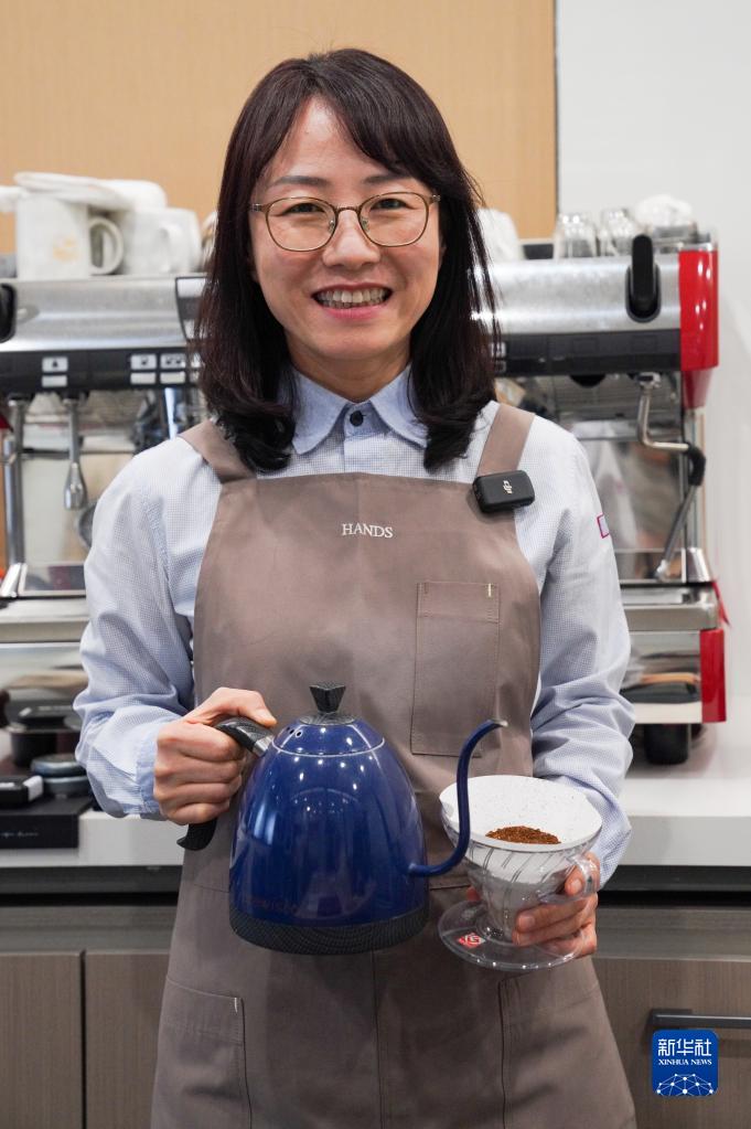這是4月4日拍攝的黃春善。黃春善是吉林延吉一家餐飲公司的負責人,也是一名咖啡培訓師,目前運營著22家連鎖咖啡店。從上海一家外企辭職后,2009年黃春善回到延吉開辦咖啡培訓班,帶動年輕人創(chuàng)業(yè),目前在延吉已培訓了超過1000多名咖啡從業(yè)者。