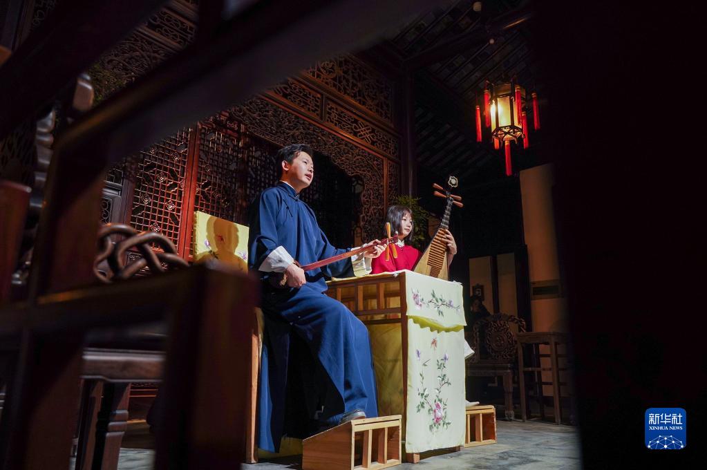 近年來,江蘇省蘇州市網師園通過數字化展示手段,結合江南絲竹演奏、昆曲、評彈等傳統曲藝表演,不斷探索園林夜游發展新模式,將古典美學融入現代生活,為游客展示夜間的園林魅力。