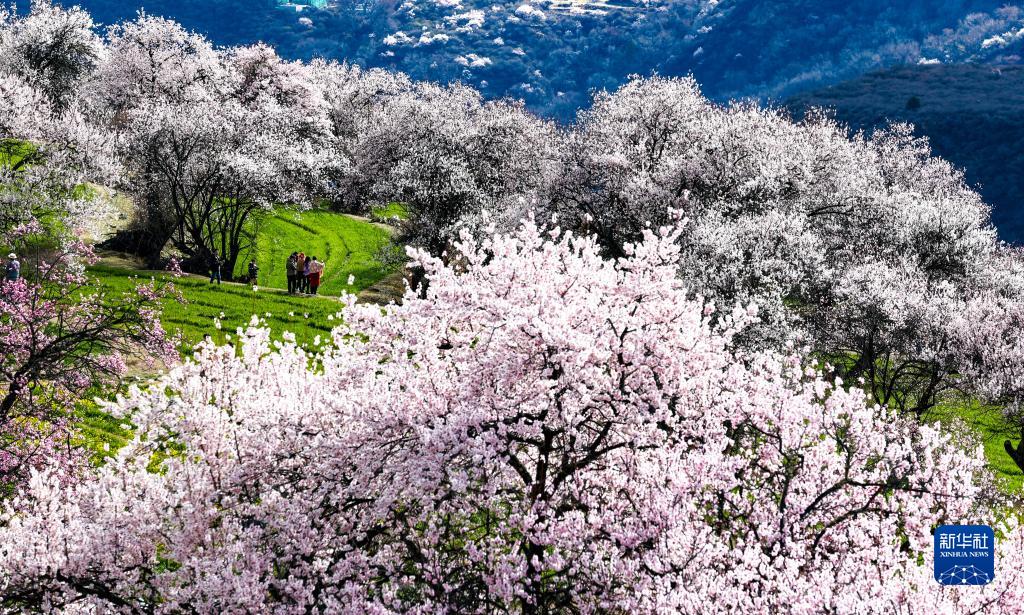 清明時節,西藏米林市派鎮索松村的桃花進入盛放期,吸引游客前來觀賞、拍攝。