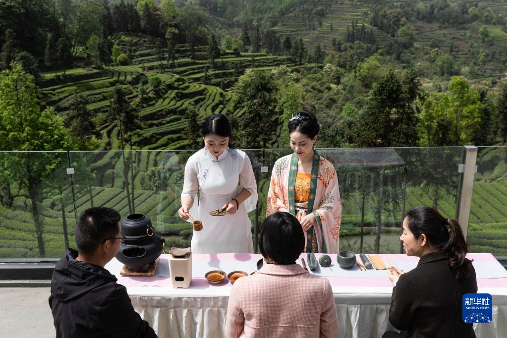 近日,四川省洪雅縣止戈鎮青杠坪村的村民們忙著在茶園里采摘茶葉鮮葉。近年來,青杠坪村立足萬畝生態茶園資源稟賦,打造“青杠坪·茶客空間”農旅融合景區,為游客提供采茶體驗、茶園研學、住宿餐飲等服務,經營兩年來,景區累計接待游客總數39萬人次。