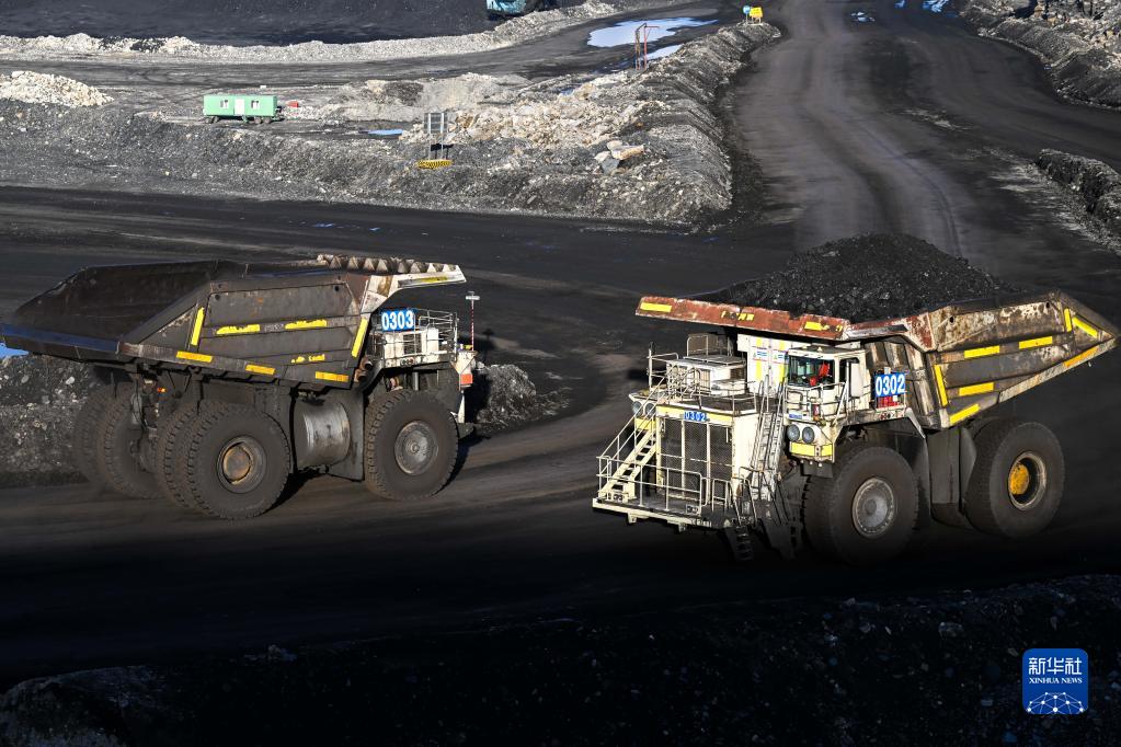 4月6日,礦車在位于準格爾旗的國家能源集團準能集團哈爾烏素露天煤礦運輸煤炭。