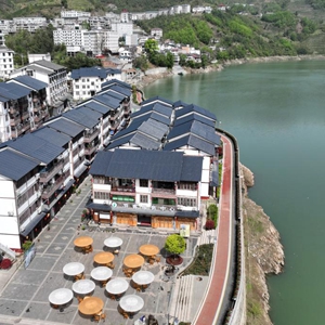 建設優化后的紫陽縣煥古鎮貢茶古鎮景區(4月6日攝,無人機照片)。