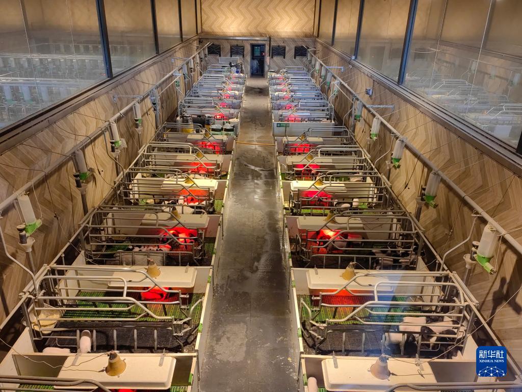 4月7日,在位于浙江省金華市婺城區長山鄉的熊貓豬豬“未來牧場”,豬舍內部配備先進養殖設施,實時監控、掌握豬只生長情況。