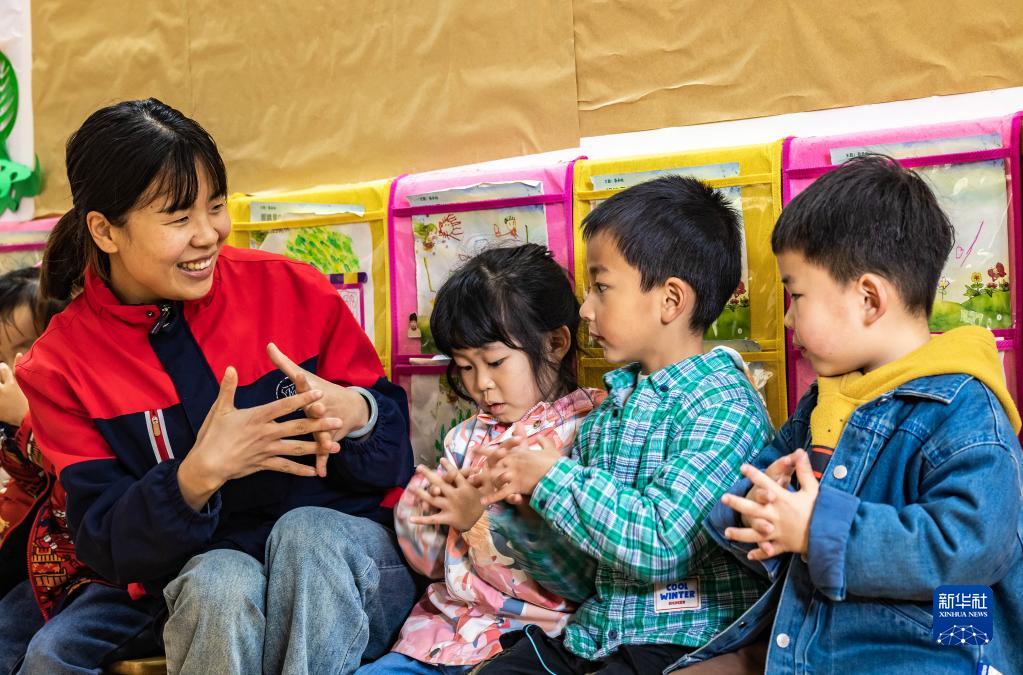 4月7日,在貴州省安順市西秀區一家幼兒園,小朋友在老師指導下學習“七步洗手法”。