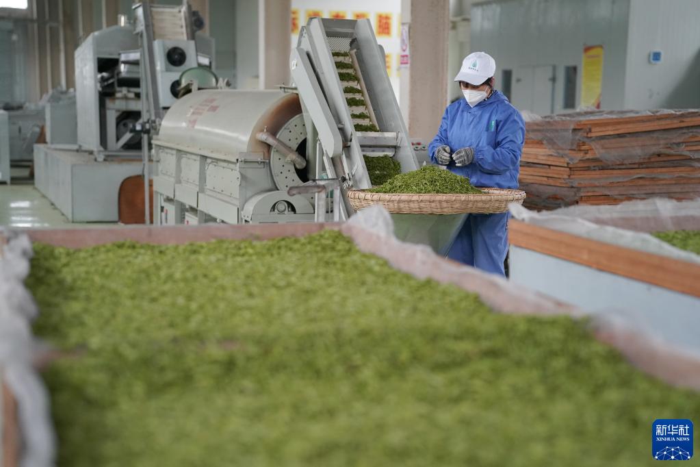 4月5日,漢中市南鄭區青樹鎮一家茶企的工作人員在生產線上工作。