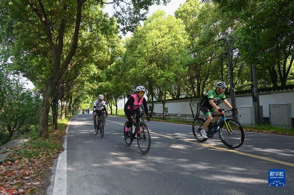 4月8日,騎行愛好者在浙江省諸暨市趙家鎮(zhèn)香榧國家森林公園參加健身騎行活動。