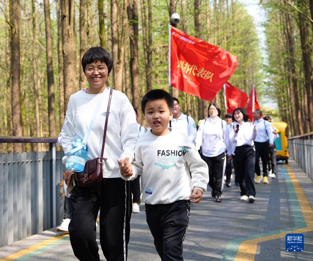 4月8日,市民在青山湖綠道參加第35個愛國衛生月毅行活動。