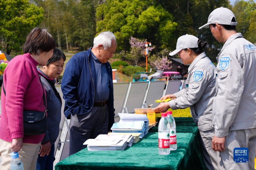 4月8日,在臨安青山湖綠道廣場,志愿者向群眾發(fā)放家庭除“四害”藥物以及宣傳資料。