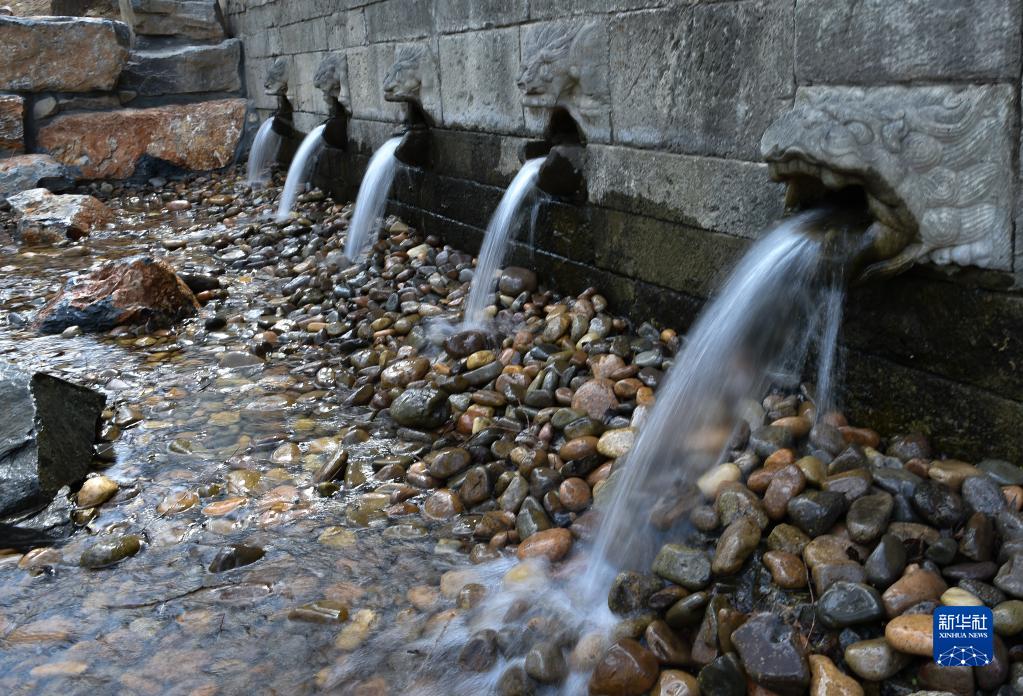 這是4月6日在位于北京市昌平區(qū)的大運(yùn)河源頭遺址公園里拍攝的九龍池出水口。