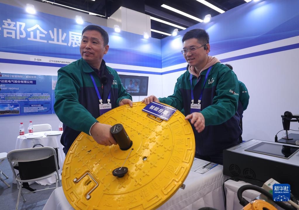 4月8日,參展商在2023中國中小企業發展大會“專精特新”中小企業展覽會上演示產品。