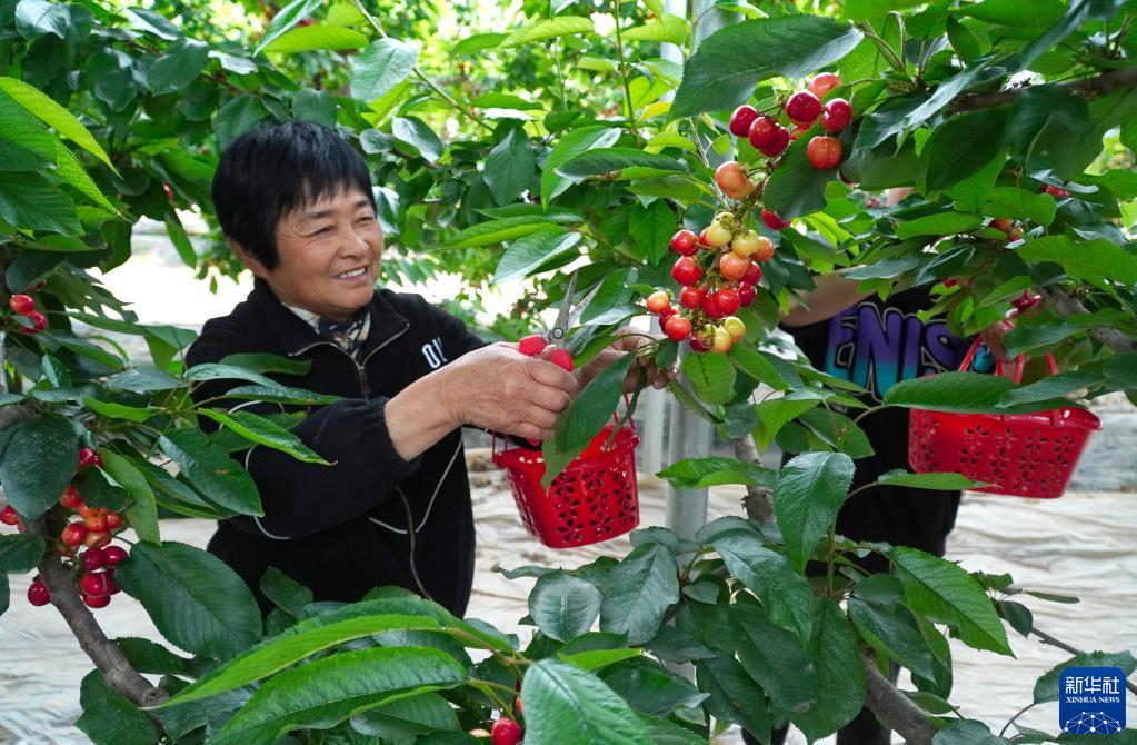 近日,在山東省菏澤市成武縣,大棚櫻桃陸續成熟,櫻桃種植戶忙著采摘收獲供應市場,也吸引不少游客前來游覽、采摘。近年來,當地根據市場需求,采取“村黨支部領辦合作社”的模式發展大棚櫻桃產業,帶動村民就業增收。
