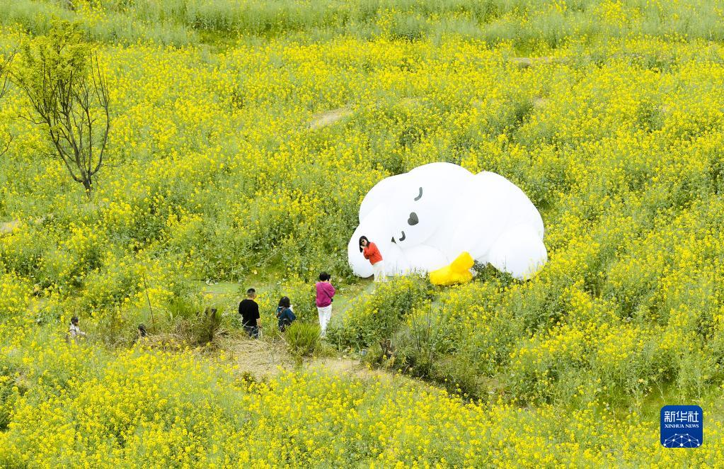 游客在浙江省紹興市上虞區(qū)覆卮山古梯田間留影(4月3日攝)。