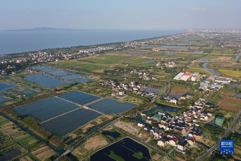 浙江省湖州市吳興高新區毗鄰太湖的村莊(2022年10月13日攝,無人機照片)。