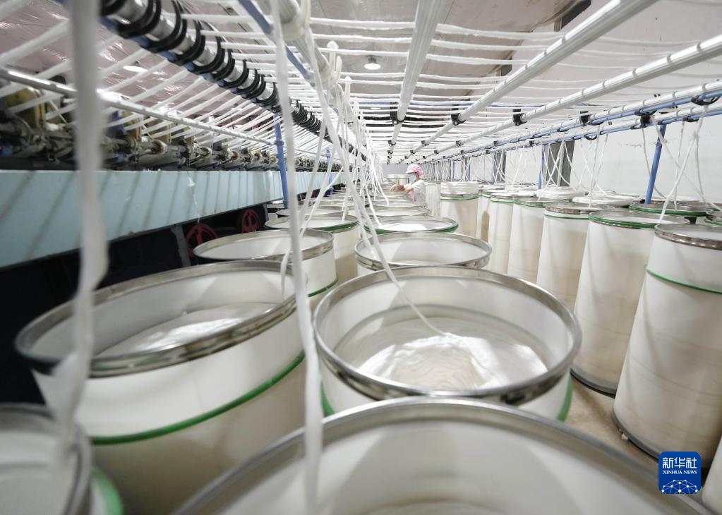 4月9日,工人在河北省青龍滿族自治縣朱杖子鄉朱杖子村一家紡織企業生產車間工作。