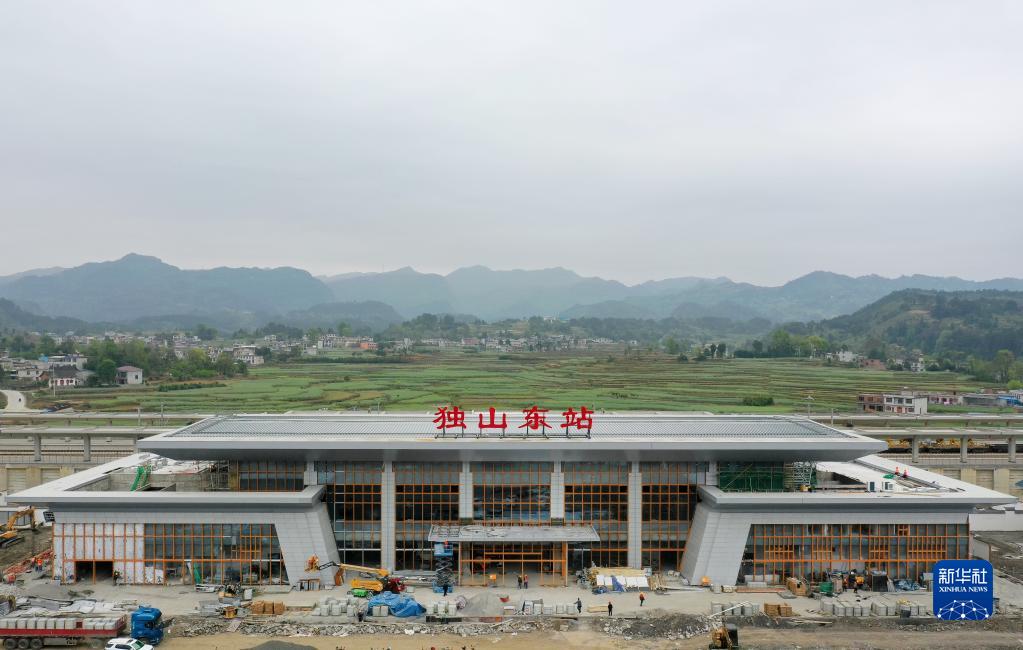 4月9日,獨山東站在緊張施工當中(無人機照片)。